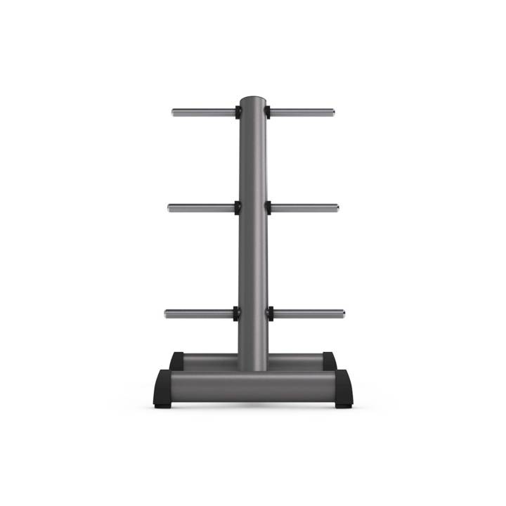 De solide vægtpinde er placeret, så skiverne holdes stabilt og organiseret efter størrelse. Det giver et ryddeligt og professionelt udtryk – noget der er afgørende i moderne fitnesscentre, hvor både funktion og visuel præsentation spiller en vigtig rolle.