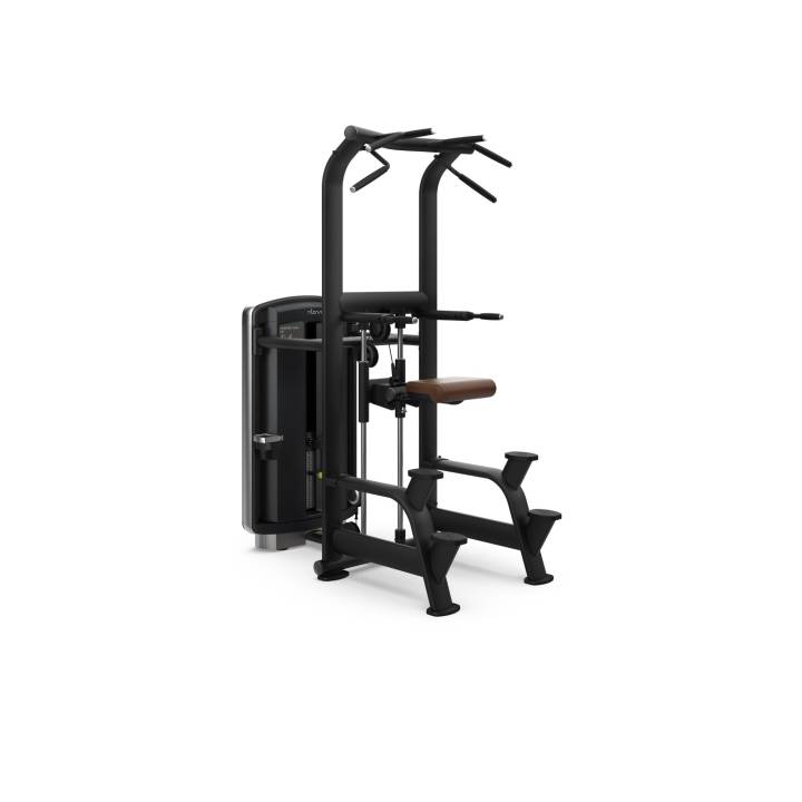Det modbalancerede vægtsystem giver variabel assistance, så brugeren kan tilpasse belastningen efter behov. Maskinen er udstyret med flere grebspositioner, stabile fodplader og brede håndtag, som muliggør variation i både chin-ups og dips.