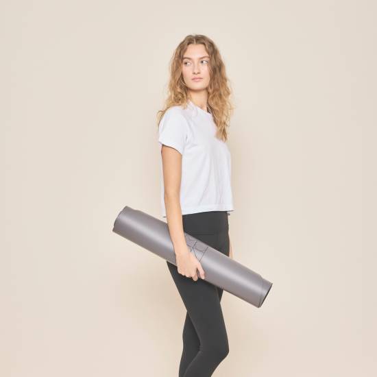 Denne yogamåtte fås i to smukke, afdæmpede farver, som begge understøtter et roligt og tidløst udtryk: