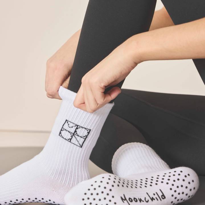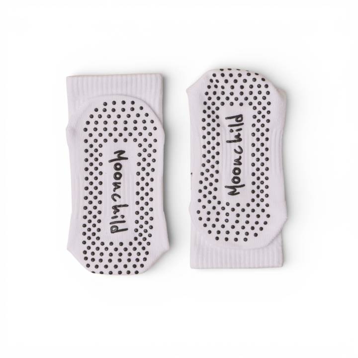Moonchild Pilates Socks kombinerer funktionalitet med et rent og minimalistisk design. Den hvide farve giver et let og tidløst udtryk, der passer ind i både professionelle studier og private træningsrum.
