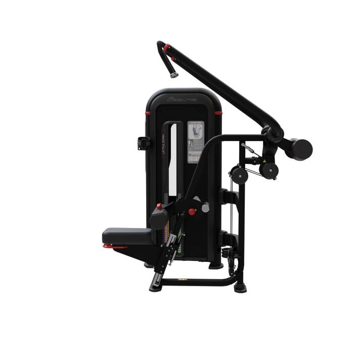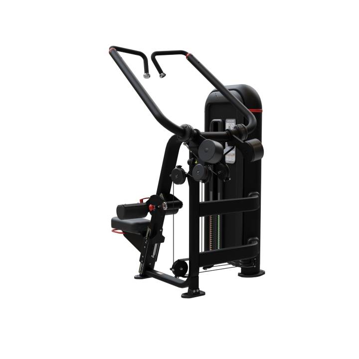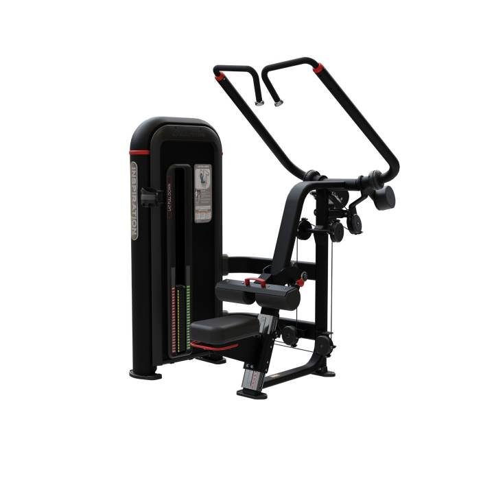 Maskinen er målrettet muskeltræning af den øvre ryg, hvor især lats, øvre trapezius og bageste skulderparti aktiveres. Bevægelsesbanen er designet til at give en stabil og guidet pulldown-bevægelse, som hjælper brugeren til at holde fokus på muskelkontakt frem for balance og teknik.